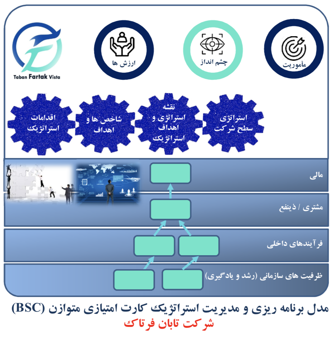 شرکت تابان فرتاک ، سیستم مدیریت استراتژیک خود را برمبنای چارچوب کارت امتیازی متوازن که یک مدل برای سیستم برنامه ریزی و مدیریت استراتژیک است (BSC: Balanced Scorecard) بنا نهاده است تا: